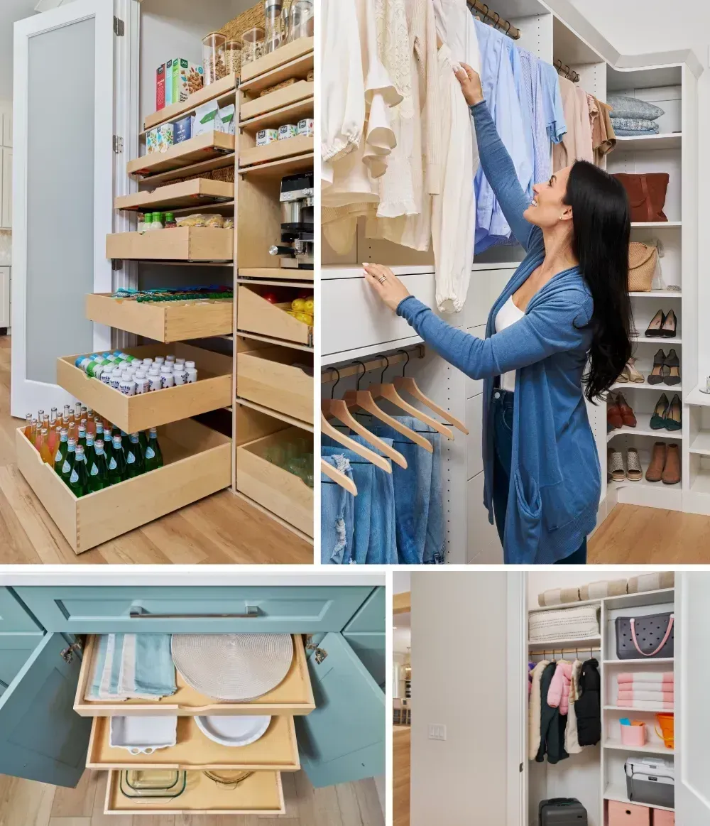 Install glide-out shelves for easier access to your stored goods or treat yourself to a gorgeous new custom closet!
